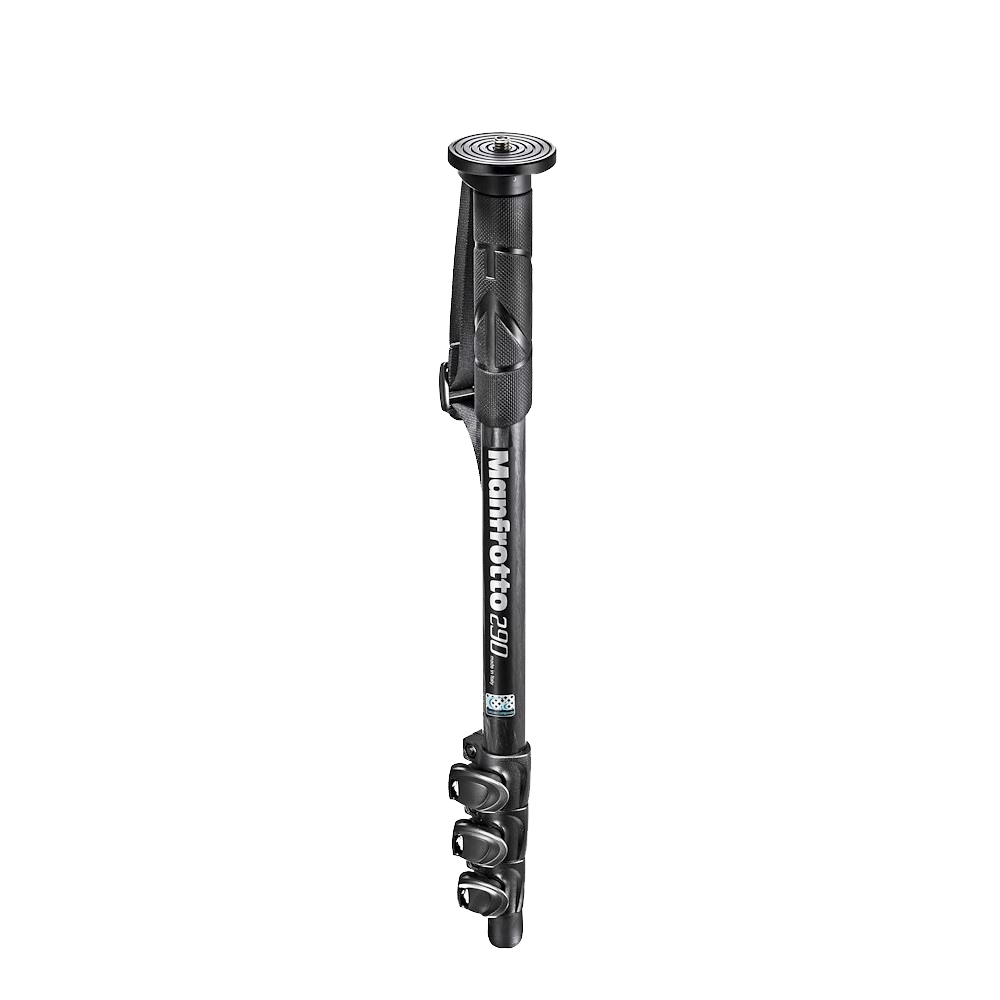 The 290 Carbon monopod has a four-section carbon composite leg that’s both lightweight and rigid to keep the camera stable and minimize vibration. The 4-section construction enables the monopod to be extremely compact for easy transportation when closed. A wrist strap keeps the monopod and camera firmly in your grasp and a new rubber legwarmer increase its grip. Durable tension-adjustable magnesium leg locks can be tightened to suit your preference and counteract any effects of aging and wear, keeping the monopod fully functional throughout its long lifespan. The monopod screws directly into the tripod mount on the underside of your camera. You can also attach a head to it thanks to the ¼ - 3/8 attachment.