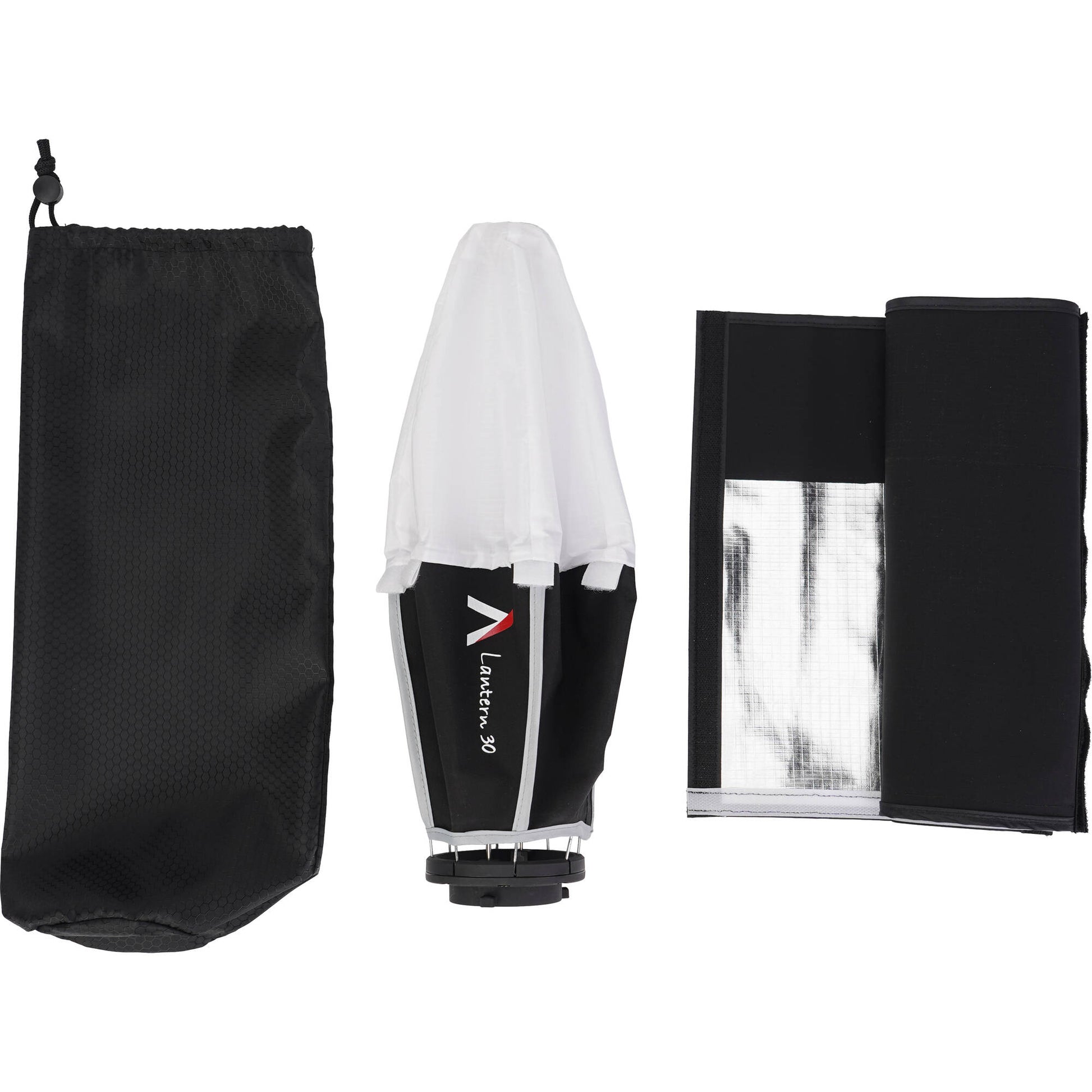 The Lantern 30 is a spherical mini softbox with a 30cm diameter diffuser. It features a Mini ProLock Mount to attach to the STORM 80c. The Lantern 30 includes an adjustable skirt to control the spread of light.