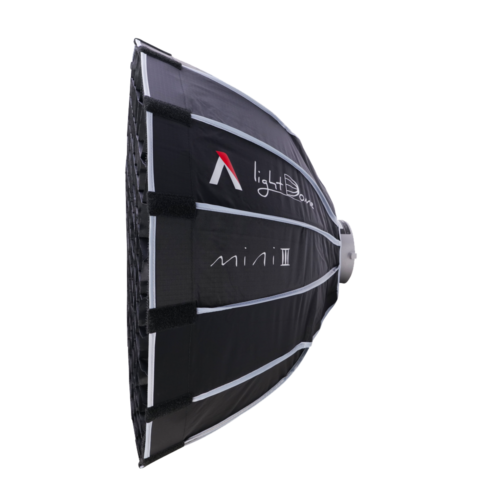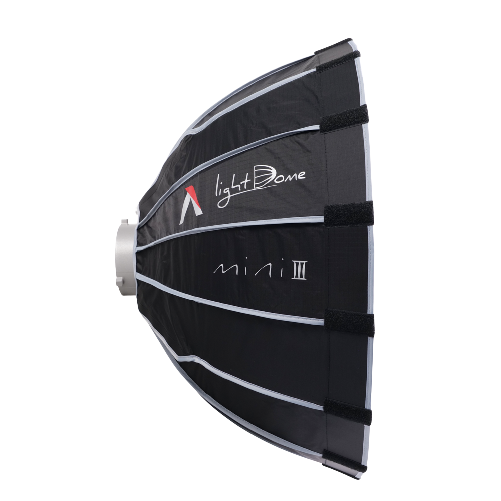 The Aputure Light Dome III is a foldable quick-setup Bowens Mount softbox that transforms hard point-source fixtures into a circular, soft light, while providing a faster and more portable mechanism compared to other widely used quick-setup softboxes.