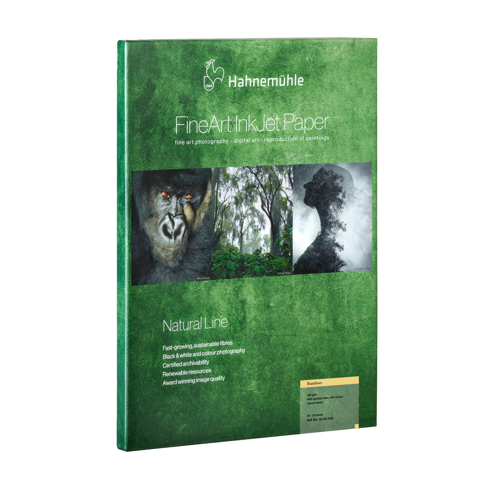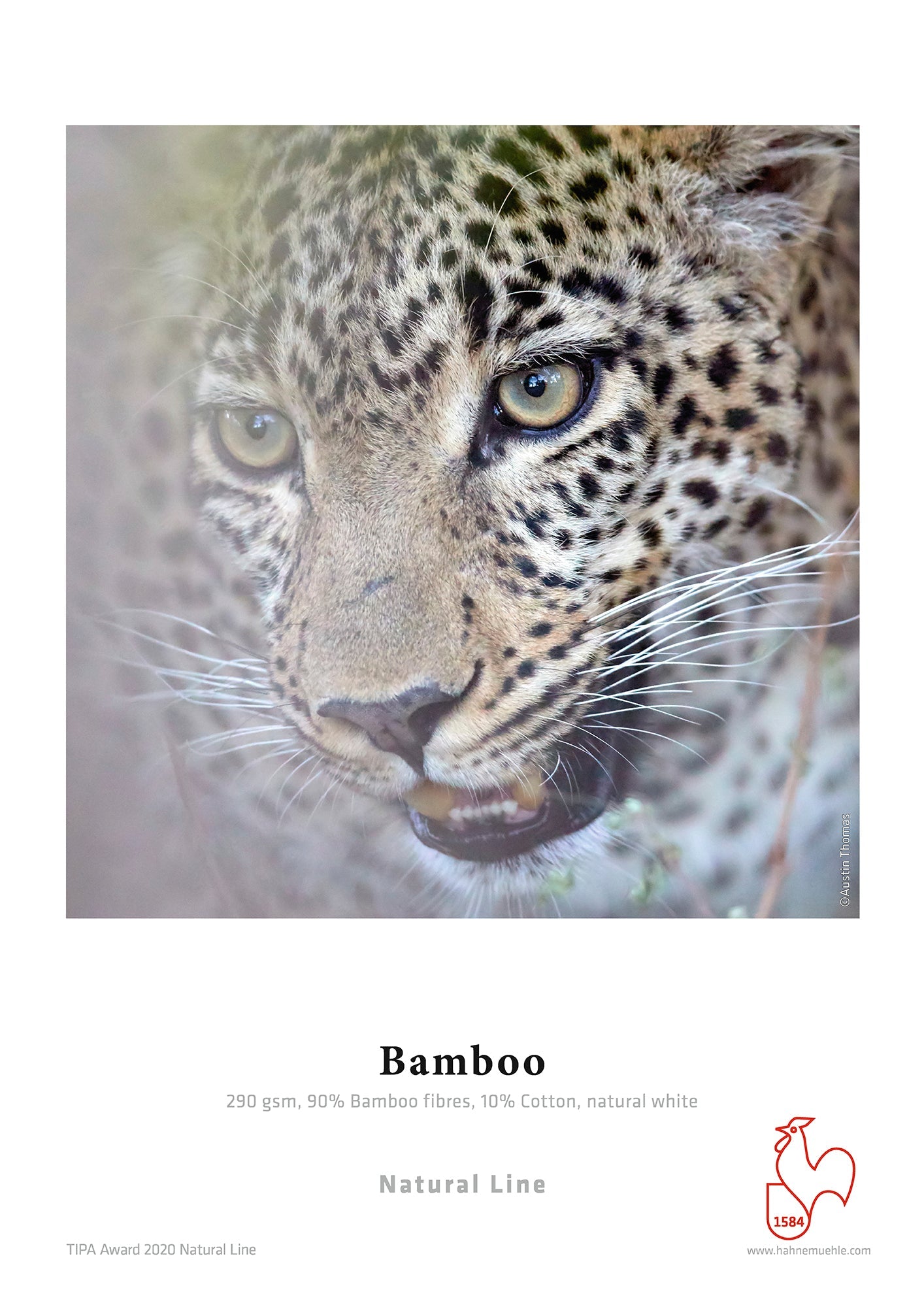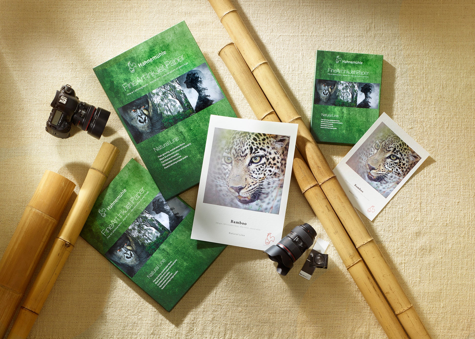 Hahnemühle Bamboo is the world’s first FineArt inkjet paper made from 90% bamboo fibres, for a natural look and environmentally friendly paper production. The natural white, warm-toned bamboo paper does not contain optical brighteners, and stands out thanks to its soft, lightly textured felt structure and sensual feel. The matt premium inkjet coating delivers excellent printing results with defined reproduction of colour and detail, particularly for warm hues and monochrome prints. Bamboo is acid- and lignin-free and meets the most precise requirements in terms of age resistance. The unique combination of sustainable bamboo fibres, soft surface texture and impressive print quality gives the artwork outstanding expression and soul.