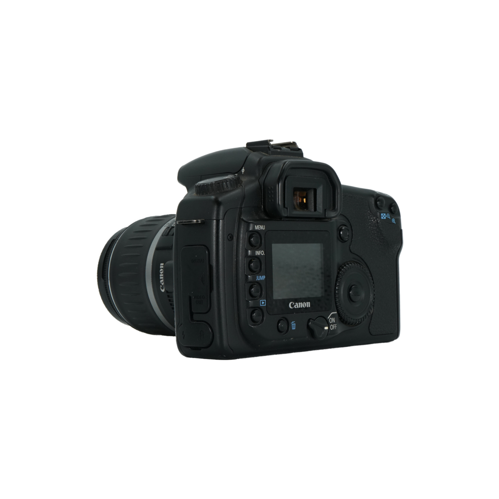 Canon 20D APS-C DSLR camera, 18-55mm f/3.5-5.6 APS-C DSLR lens, and 55-250mm f/4-5.6 IS APS-C DSLR zoom lens