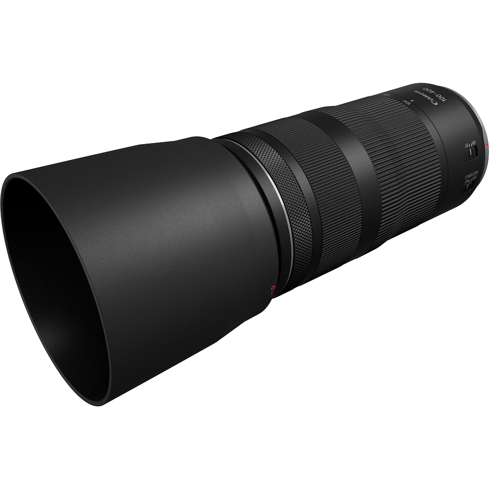 Perfect for wildlife, sports, travel and more, the Canon RF 100-400mm f/5.6-8 IS USM Lens is a compact, lightweight telephoto lens for EOS R Series cameras, offering a versatile zoom range that brings subjects closer with ease. The RF100-400mm F5.6-8 IS USM is similar in size to the EF 70-300mm F4.5-5.6 IS II USM lens, but not only reaches to 400mm, but also has fast Nano USM focusing and up to 6 stops of Coordinated IS when used in combination with an EOS R series camera featuring In-body Image Stabilization like the EOS R5 and EOS R6, or 5.5 stops with an EOS R/RP camera. Using a single Ultra Low Dispersion lens element towards the front of the lens group corrects chromatic aberration throughout the entire zoom range, making your images look crisp and colorful with minimal color blur. The RF100-400mm F5.6-8 IS USM lens can also accept both the RF1.4x and RF2x tele extenders giving you the effective maximum focal length of 560mm and 800mm respectively. With a control ring that allows for quick setting changes, including shutter speed and aperture, the RF100-400mm F5.6-8 IS USM lens puts quality, convenience and control in your hands.