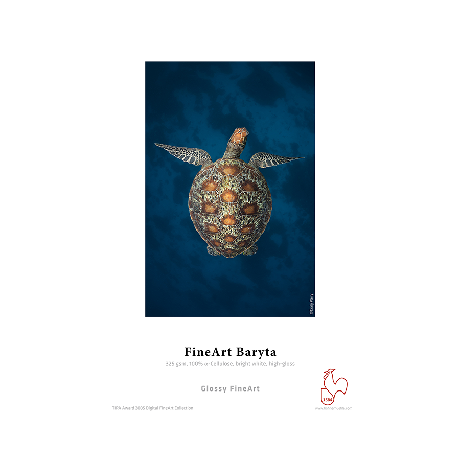 Hahnemühle FineArt Baryta is a bright white, cellulose-based FineArt inkjet paper with an inkjet coating specially tailored for FineArt use. The clearly visible, exquisite felt structure lends the paper its lovely soft feel and tactile surface texture to produce prints with a stunning three-dimensional quality and depth. The high-gloss premium inkjet coating guarantees outstanding print results with perfect reproduction of colour and detail, deep blacks and striking contrasts. The barium sulphate within the coating gives FineArt Baryta the feel of a traditional analogue baryta paper and makes it a popular alternative for inkjet printing. The acid- and lignin-free FineArt inkjet paper meets the most exacting requirements for age resistance. FineArt Baryta is a versatile classic for FineArt applications and sets standards in the printing of both black and white and colour photographs.