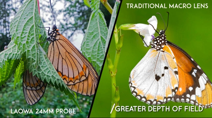 - Tiny Lens Tip - Getting proper lighting onto the subject is not always an easy task for macro photography. Typical macro lenses have large lens barrels (at least 60mm or above in diameter), blocking most of the light from hitting the subject. Our Laowa probe, on the other hand, features a 20mm diameter lens tip which makes it super easy to get sufficient illumination.