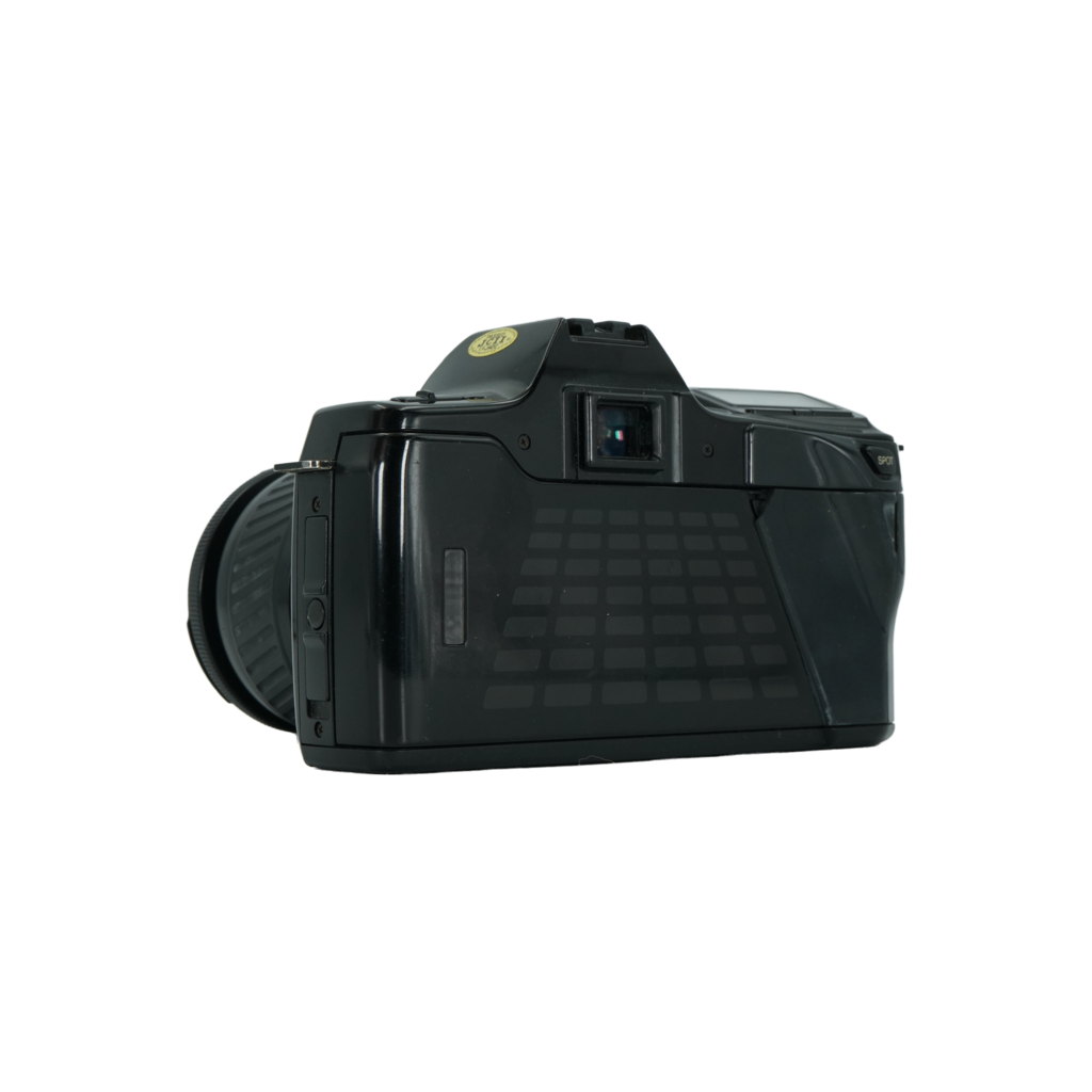 This 35mm SLR kit is in good condition, showing minimal signs of wear and tear. Lens and viewfinder optics are clear of any significant dirt, dust, or fungus. Light seals are in decent condition, but may need replacing in the near future. This is a great camera for the budding film photographer. Includes manual, leather case, strap, body cap, 28-80mm lens, and 70-210 lens. SN:Camera-21123911, 28-80mm-61706286, 70-210mm-15205625