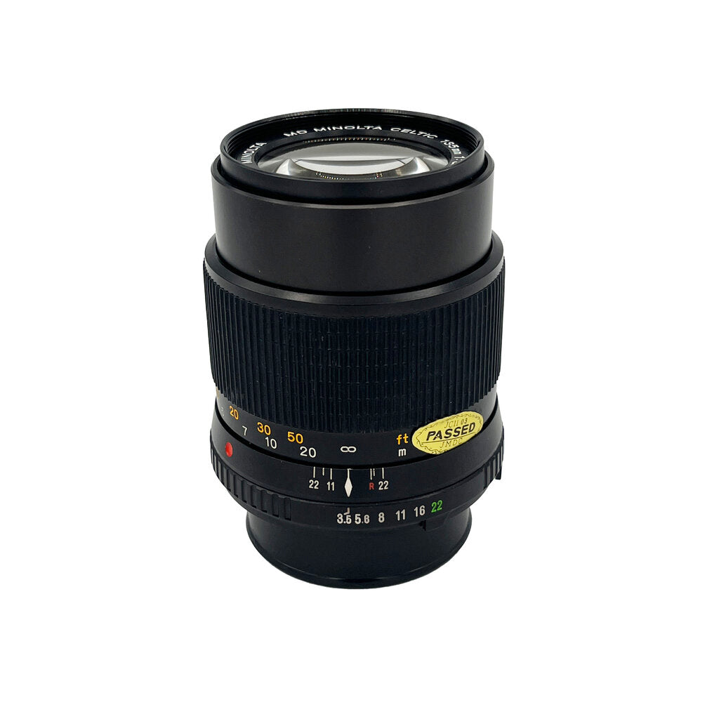 This 35mm film camera is in good condition, showing some external signs of wear and tear. There is some dust or fungus in the included lens but it is superficial and does not affect the cameras operation. Includes: Minolta MD Rokkor-X 45mm f/2, Minolta MD Celtic 135mm f/3.5, front and rear cap, and manuals . SN: Camera- 7489221, 45mm- 153593, 135mm- 1047100