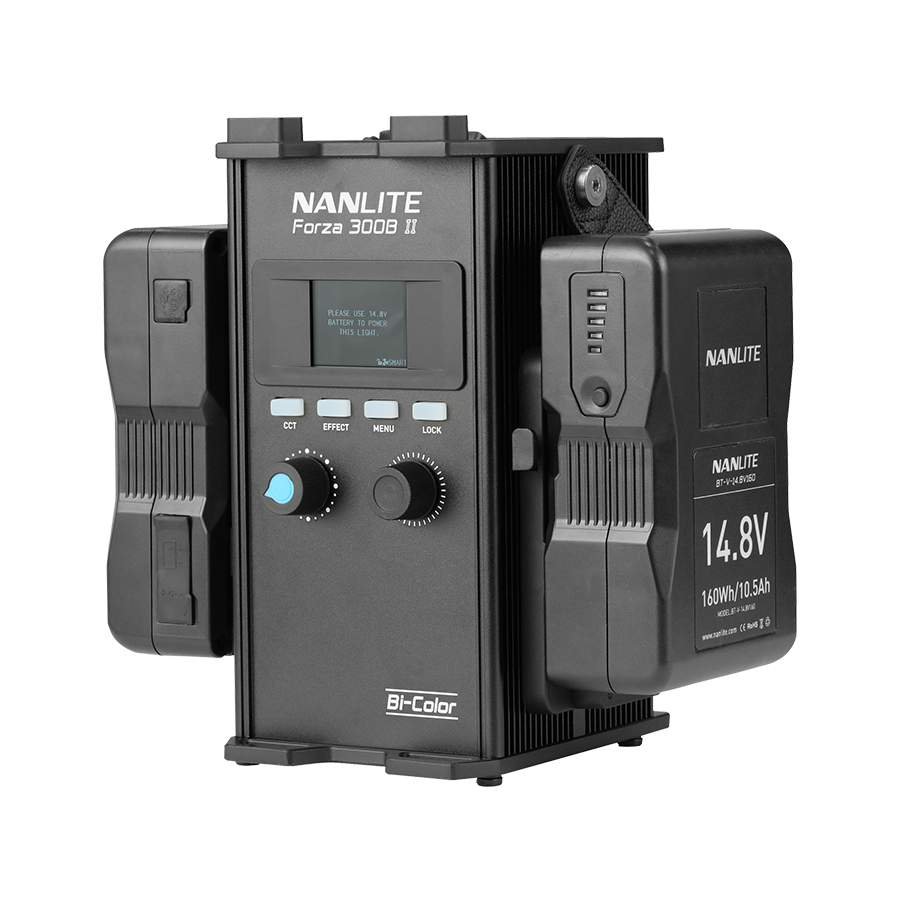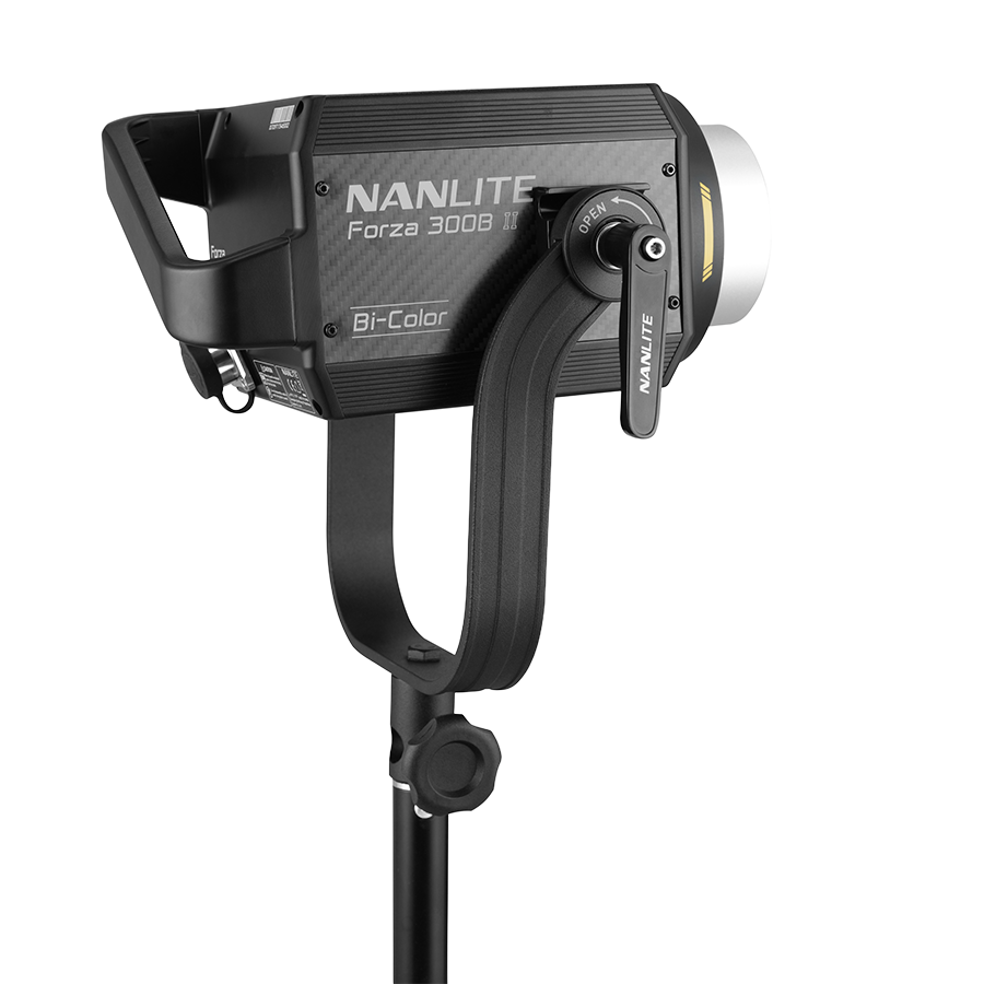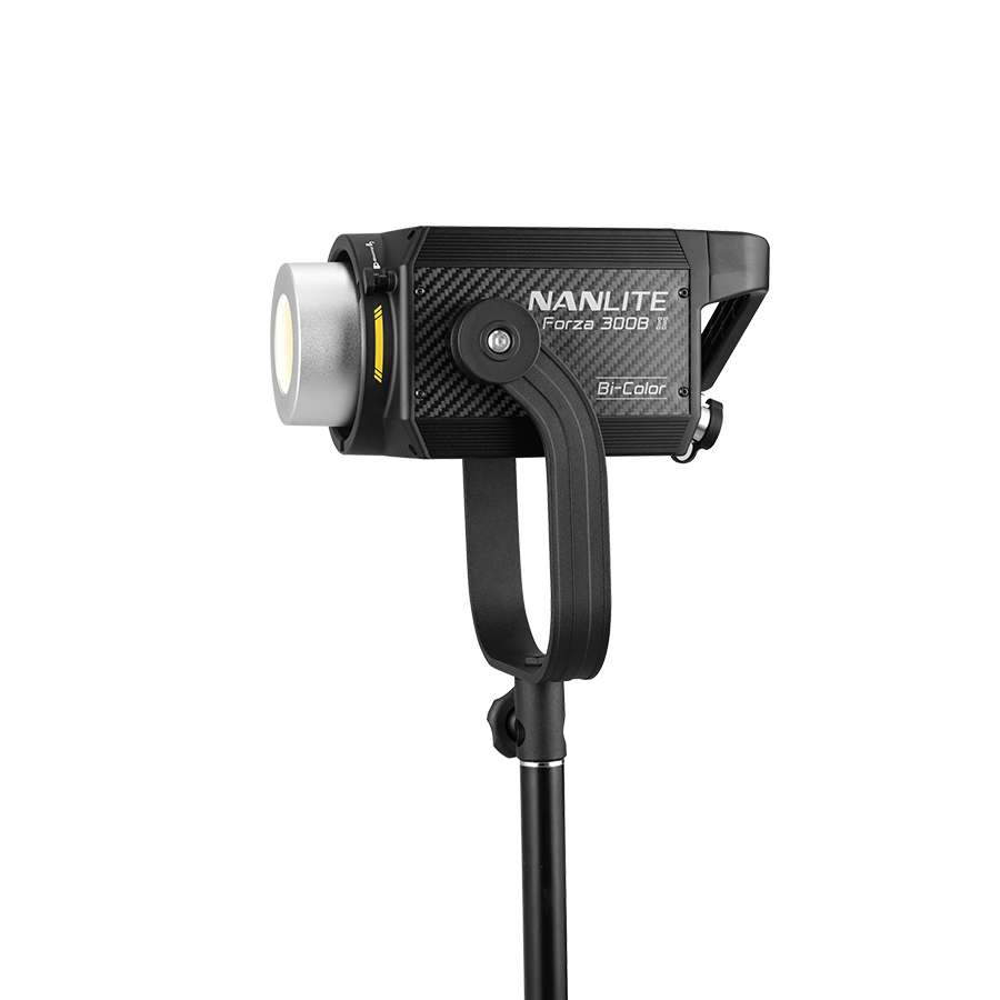 The Nanlite Forza 300B II Bi-Color LED Spotlight excels at being as compact and lightweight as possible, yet delivers 68060 Lux (6323 fc) at 1-meter 5600K with the included reflector, with a versatile CCT range of 2700K–6500K.