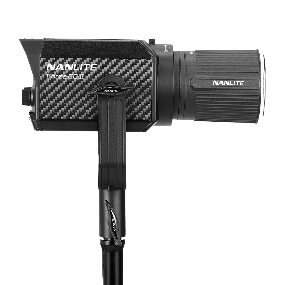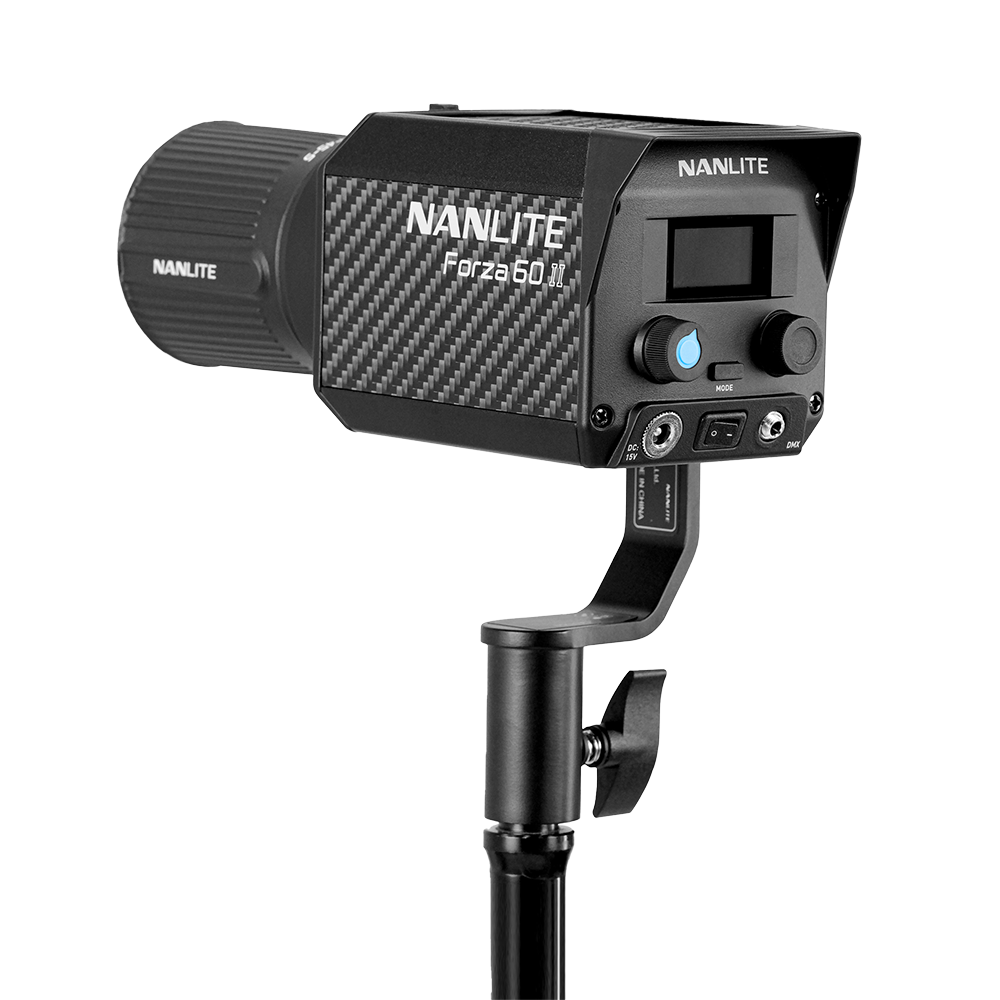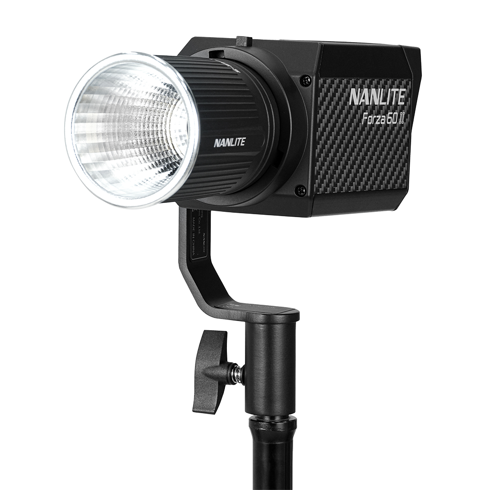 The Nanlite Forza 60 II LED Monolight is small enough to fit in one hand, yet powerful enough to provide 17620 Lux (1637 fc) of 5600K daylight-balanced light at 1 meter with the included reflector. It's ready for professional production with a durable build quality, control options for Bluetooth, 2.4G, and DMX/RDM, a glass-protected COB, a compact AC adapter and the ability to efficiently run on a V-Mount battery or NP-F batteries with the included BH-FZ60 handgrip (a V-Mount handgrip is sold separately).