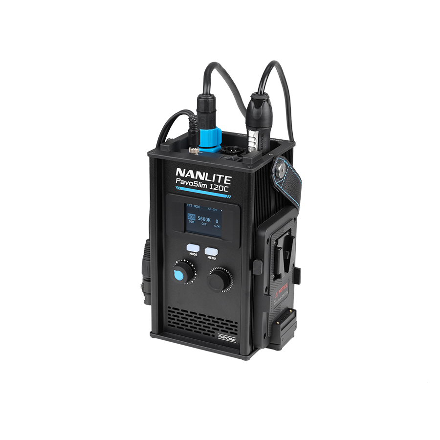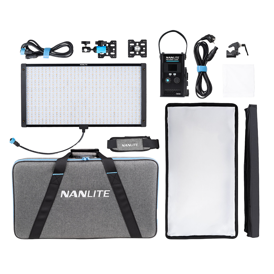 The Nanlite PavoSlim 120C is a compact, lightweight 2x1 RGBWW LED panel offering powerful output and advanced features, perfect for tight spaces and portable setups.