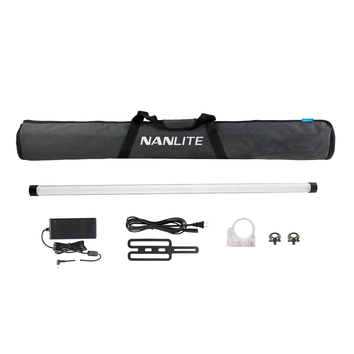 Nanlite PavoTube II 30X 4' RGBWW LED Pixel Tube with Internal Battery - A second-gen LED tube refined based on feedback from creators around the globe featuring 0 to 100% dimming, an output of 746 Lux @ 1m 5600K, an average CRI of 97, an average TLCI of 98, adjustable color temperature from 2700K-12000K with green/magenta adjustment, as well as a full spectrum RGB, 15 practical special lighting effects, and 10 pixel-based lighting effects. Includes: 15V/4A Power Adapter, 9.8' (3m) Power Cable, Power Adapter Safety Strap, Transparent Polycarbonate T12 Clip with Two 1/4"-20 Receivers, 2x 1/4"-20 Eye Bolts, and Carrying Bag.