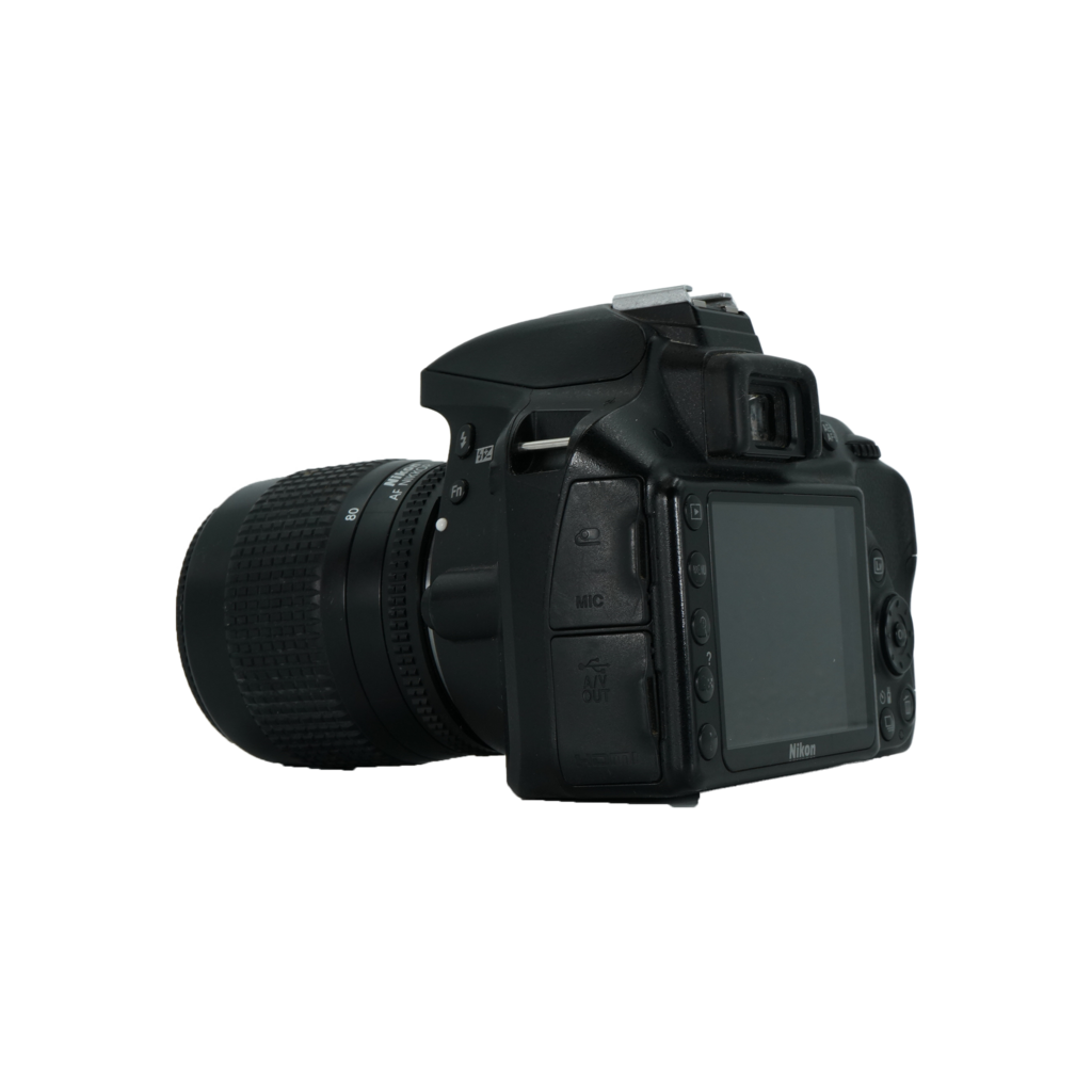 This APS-C DSLR camera is in excellent condition, showing minimal signs of wear and tear. Viewfinder and internals are free from any notable dirt, dust, or fungus. Includes; Nikon 35-80mm f/4-5.6, lens cap, camera strap, battery charger, 2x batteries. SN:Camera:-3349780, Lens:-4486768