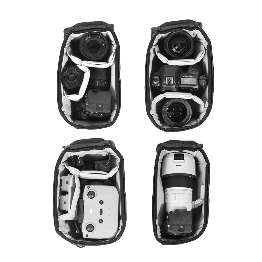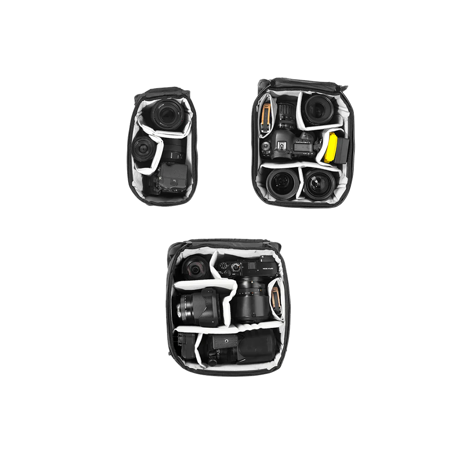 Designed to fit perfectly in any Peak Design Travel Bag or nest in your 3rd party bag, Camera Cubes give you custom organization and protection for creative gear ranging from small mirrorless kits to full pro video, photo, and drone setups. A range of different protective, low-profile FlexFold™ dividers give endlessly customizable organization. The expanded main opening gives total visibility and access to your gear, and features removable padding so you can tuck the flap away for faster access when the cubes are packed in your bag. Medium and Large cubes feature dual side zips, letting you access gear from the side access points of your 45L Travel Backpack (sold separately). Smedium, Medium, and Large cubes include a 'floating pocket' for filters, lens caps, and small stuff. Our V2 Camera Cubes are more protective than ever, featuring weatherproof #8 Ultra Zips™, weatherproof taping on external seams, and a recycled, Bluesign-approved 160D nylon canvas shell.