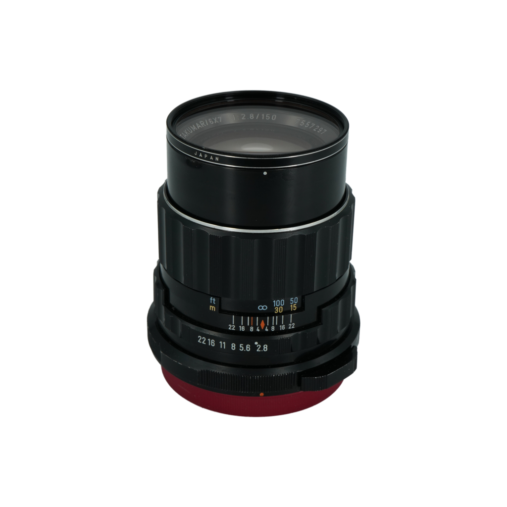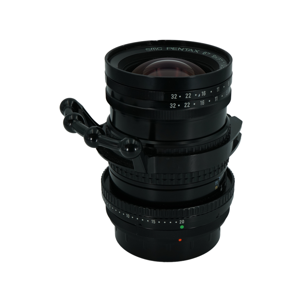 This medium-format film camera is in good condition, showing some notable signs of wear and tear. There is some dust or fungus, but it is superficial and does not affect the cameras operation. Includes: Pentax SMC 6x7 75mm Shift f/4.5, Takumar 6x7 150mm Lens f/2.8 with Vivitar Skylight Filter (67mm), Pentax 6x7 SMC 45mm f/4 with Hoya 82mm PL Filter ring, two rubber lens hoods, wooden handle, body cap, front and rear lens caps, and strap. SN:Camera-616658, 45mm Lens-8283860, 150mm-7557297, 75mm - 858628