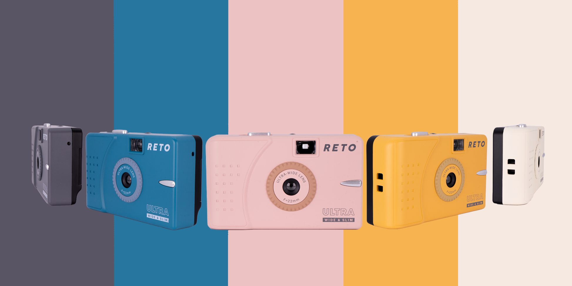 The name explains it all - a slim and lightweight 35mm film camera which features a well-built ultra-wide lens of 22mm. Being the long-awaited second creation of RETO, Ultra Wide & Slim 35mm Film Camera is launching in January 2022, providing everyone with a fresh start of the year with a portable fun camera to bring along to all parties and celebrations.