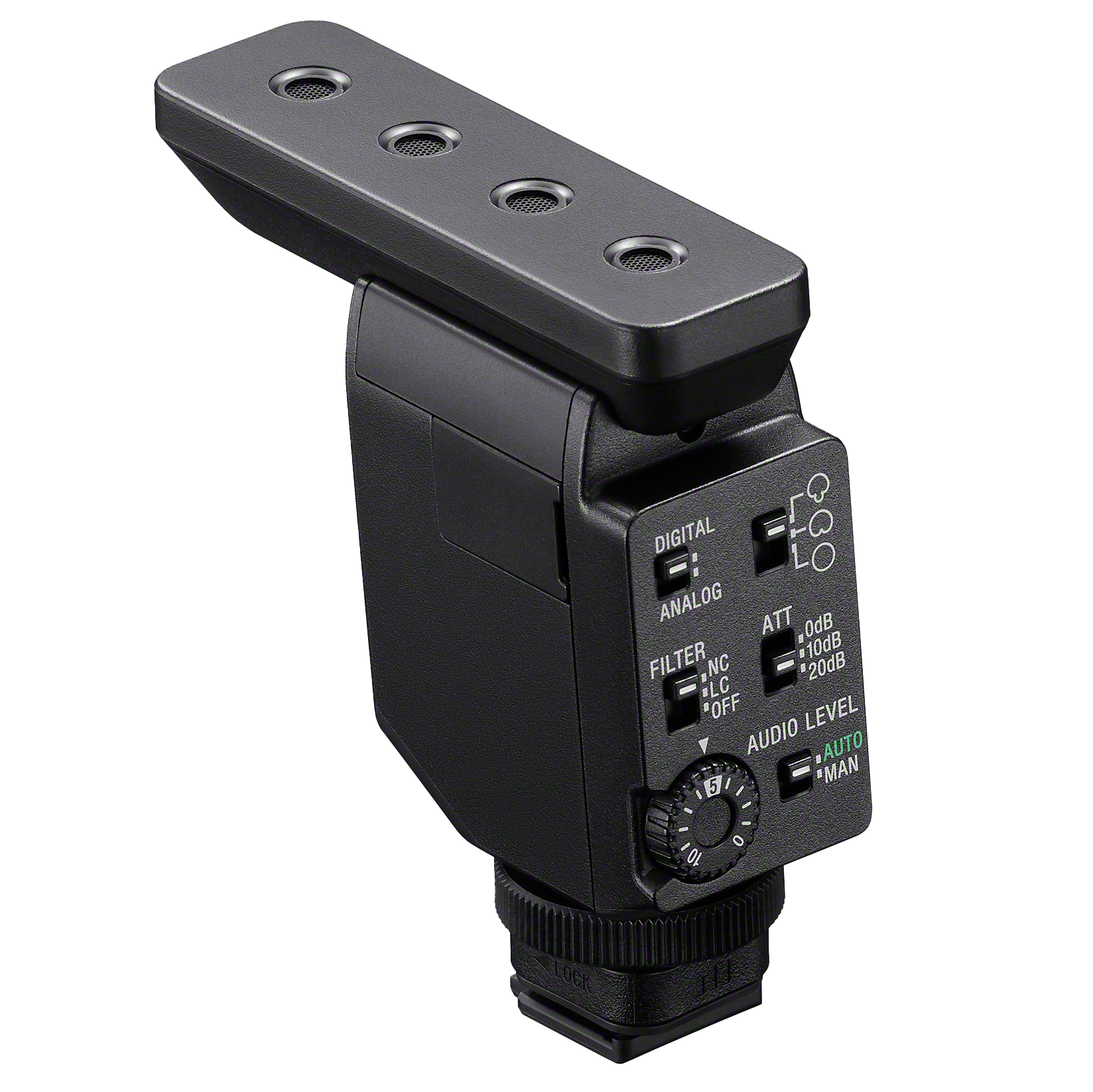Compact Shotgun MI shoe microphone with digital signal processing using beamforming technology achieves high quality audio with three switchable directivities, providing three microphones in one. Super-directional from directly in front on the microphone, ideal for selfie and interview, unidirectional with frontal range for multi-person conversations and omnidirectional, ideal for environmental or both voices from in front of and behind camera.