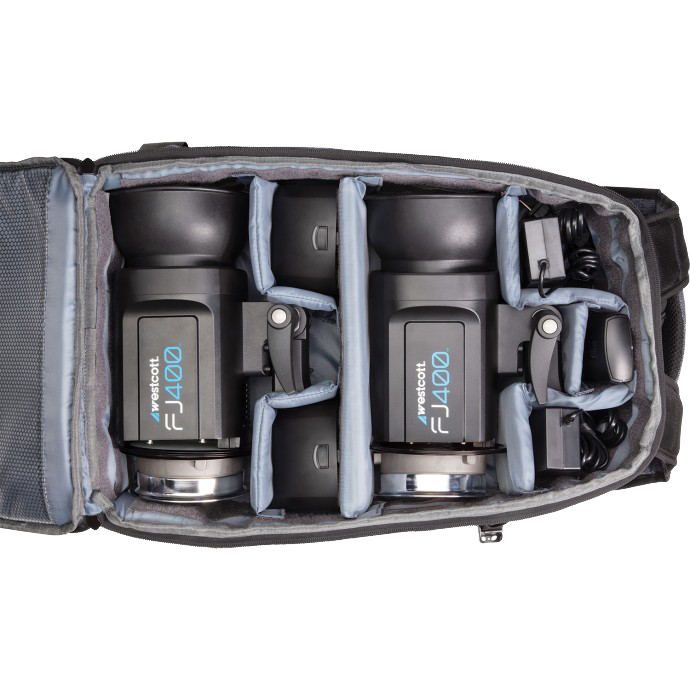The Westcott FJ400 Strobe 2-Light Backpack Kit with FJ-X2m Universal Wireless Trigger is the first portable 400Ws AC/DC strobe with under a second recycle speed at full power that offers an impressive 480+ full-power flashes per charge. The lightweight FJ400 offers unrivaled performance with the most accurate color temperature throughout its entire 9-stop output range.