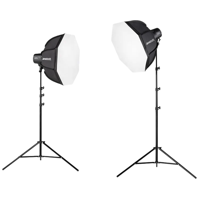 VERSATILE & FLEXIBLE: Customize your look with soft lighting using the included 22” Octaboxes or get more defined, hard lighting with the diffusion cap. Easily control the light angle with the built-in tilter bracket and expand your capabilities with optional batteries or umbrellas (both available separately).
